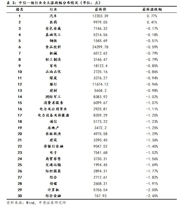 从盘中热点来看,两市超过七成个股下跌,其中贵金属、化学制药、医疗服务、医药商业以及化纤等行业涨幅居前;航运港口、游戏、贸易、互联网服务以及多元金融等行业跌幅居前。汽车整车、化纤、化学制药、医药商业以及贵金属等行业资金净流入居前;互联网服务、软件开发、半导体、通信设备以及专用设备等行业资金净流出居前。